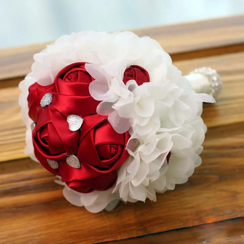 Us 16 5 4 Warna Opsional Pita Mawar Dengan Sedikit Berlian Imitasi Dihiasi Pernikahan Pengantin Pengantin Buket Tangan Memegang Bunga Di Karangan