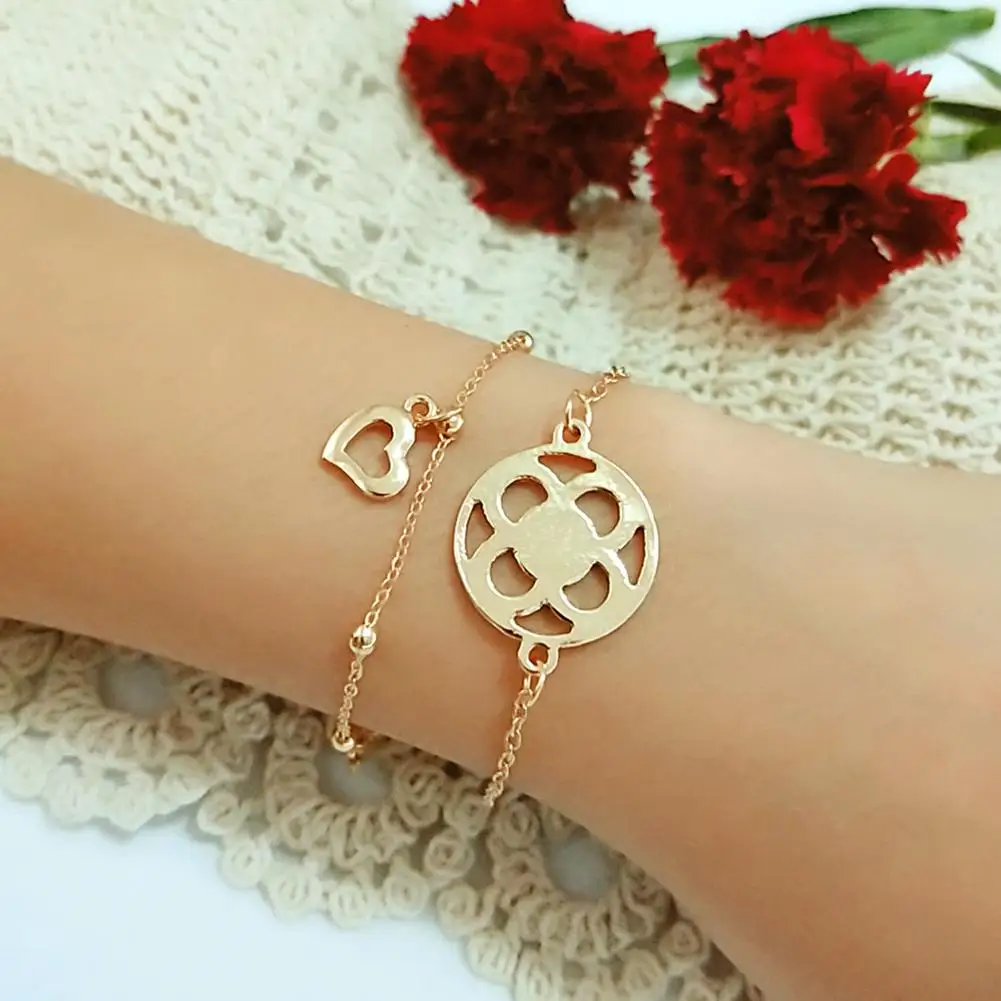 Us 0 83 36 Off 2 Pcs Set Nada Emas Hollow Bunga Cinta Hati Gelang Wanita Perhiasan Pesta Hadiah Dropshipping In Rantai Link Gelang From Perhiasan