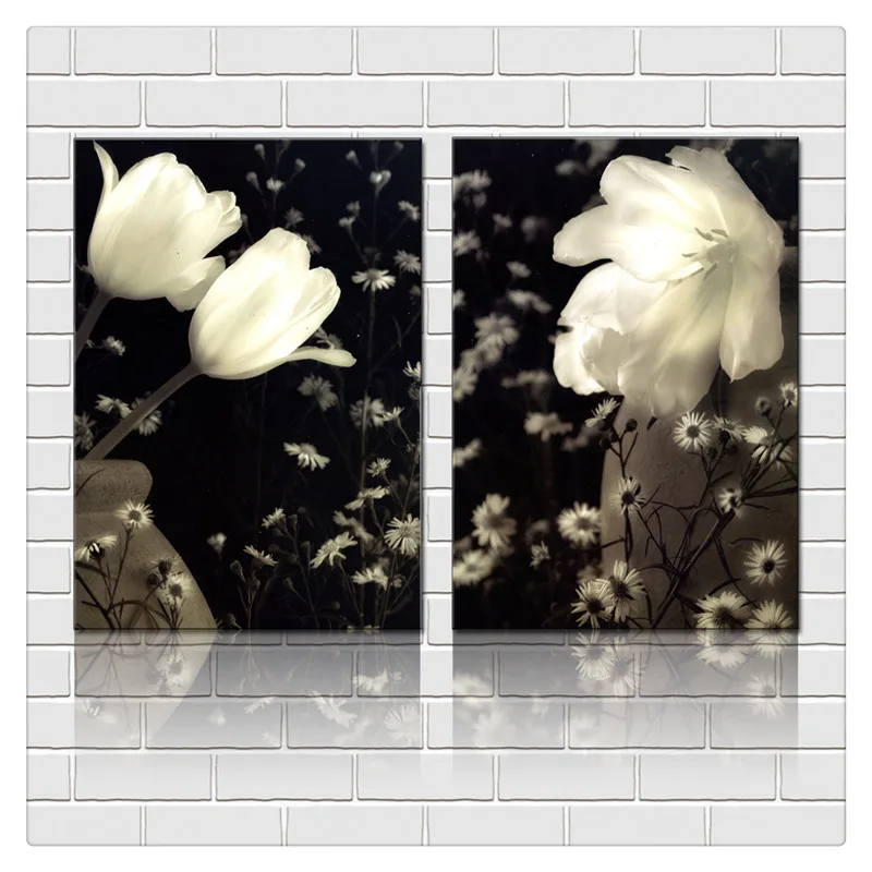 2 Panel Hitam Dan Putih Bunga Yang Bagus Gambar Dinding