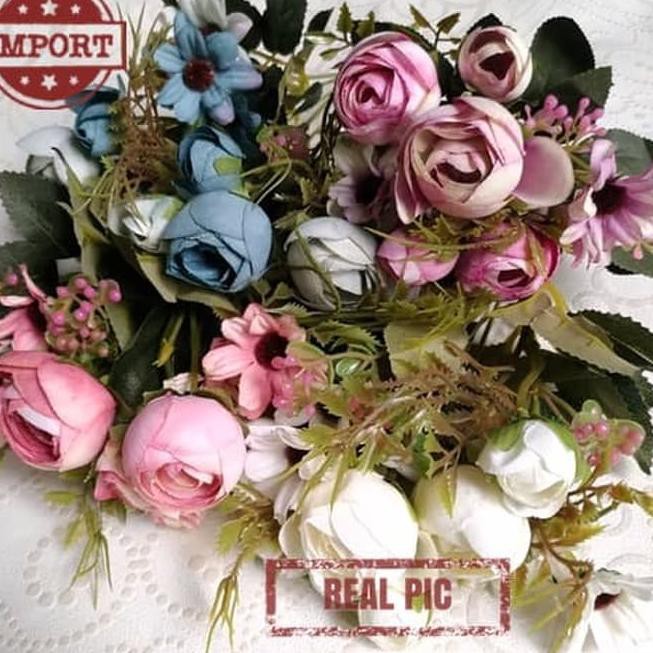 Bunga Plastik Palsu Artificial 2 Macam Mawar Krisan Dekorasi Pajangan Meja Hias Shabby Murah
