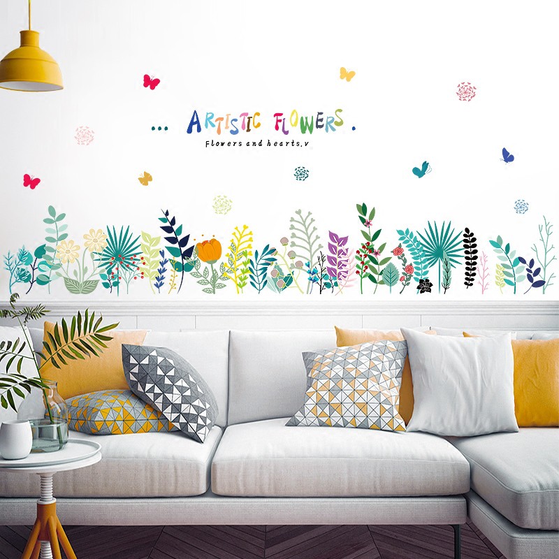 Bunga Yang Dilukis Dengan Tangan Daun Di Sekitar Garis Pinggang Stiker Dinding Kamar Tidur Anak Ana