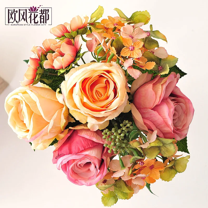 Us 59 6 Flora Eropa Bunga Bunga Simulasi Bunga Mawar Set Ruang Tamu Dekorasi Dekorasi Bunga Vas Ornamen In Set Sendok Garpu From Rumah Taman On