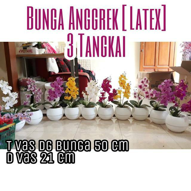 Saking indahnya bunga anggrek sampai dijadikan judul sebuah lagu jadul. Bunga anggrek latex ini sangat bagus untuk hiasan dekorasi rumah membuat rumah tampak lebih indah dan asri. Tinggi total 130 cm.