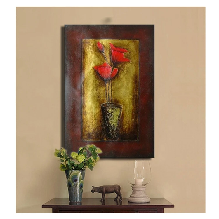 Us 8 82 51 Off Handmade Dekoratif Bunga Lukisan Bunga Merah Di Emas Dan Coklat Latar Belakang Pada Kanvas Untuk Menghias Kamar Rumah In Painting