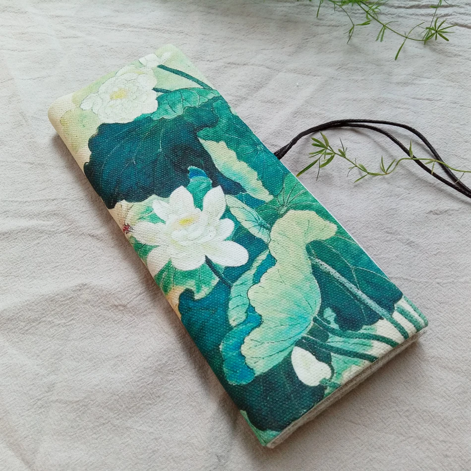 Kanvas Bunga Teratai Roll Up Pensil Case Kotak Vintage
