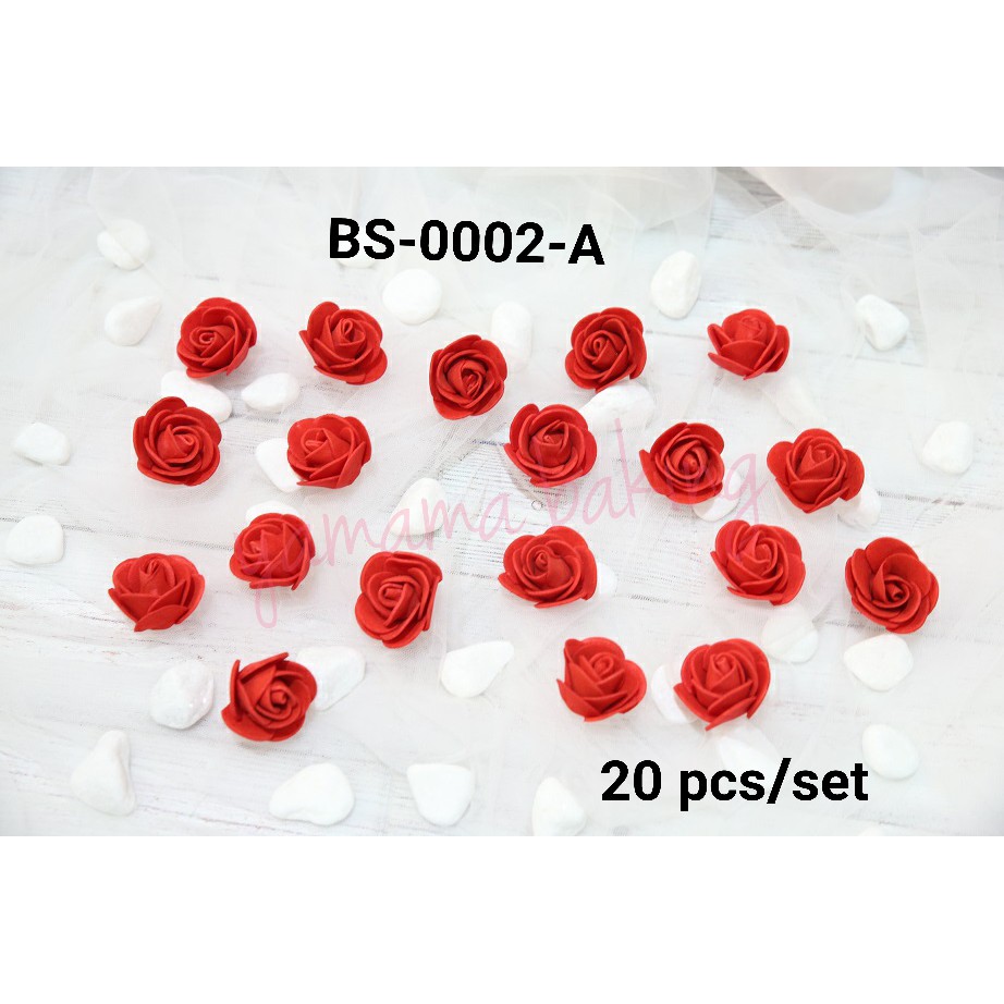 Bs 0002 A Bunga Mawar Rose Kecil Artificial Spons Busa Gabus Merah