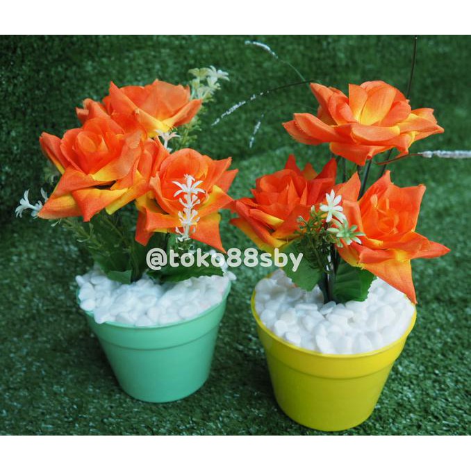 Produk Terlaris Bunga Plastik Mawar Mekar Dau Artificial Dalam Pot Orange Barang Terjamin