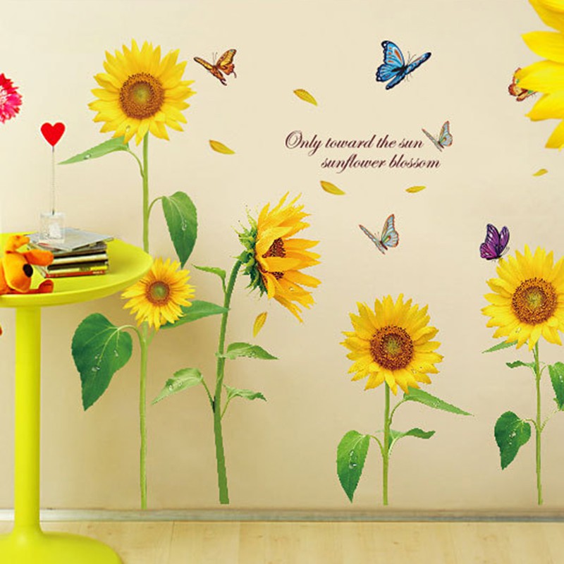 Stiker Dinding Untuk Dekorasi Rumah Model Bunga Matahari Dengan Kupu Kupu