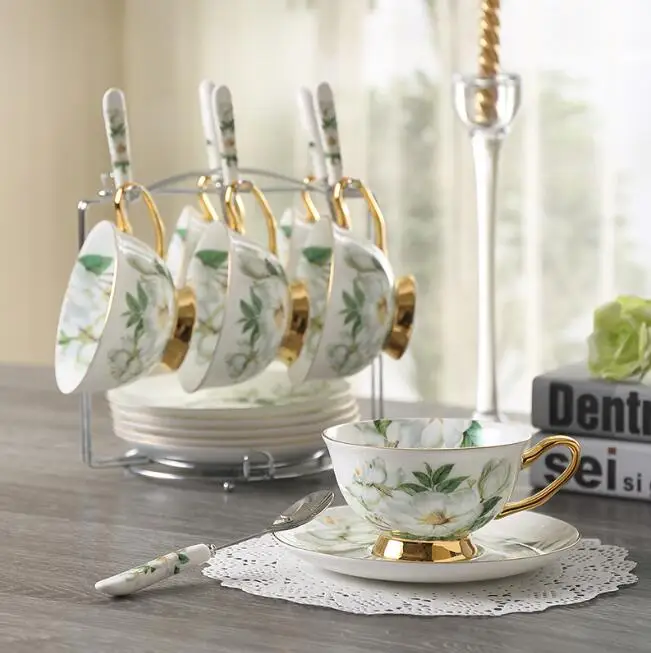 Us 106 99 180 Ml Mulia Keramik Set 6 Cangkir Teh Set Dengan Sendok Tulang Cina Pecah Motif Bunga Berlapis Emas Kopi Cangkir Teh Dan Piring Dengan