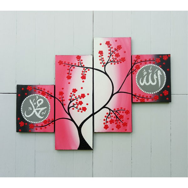 Lukisan Minimalis Panel Kaligrafi Bunga Sakura Merah Skr Lfl Merah