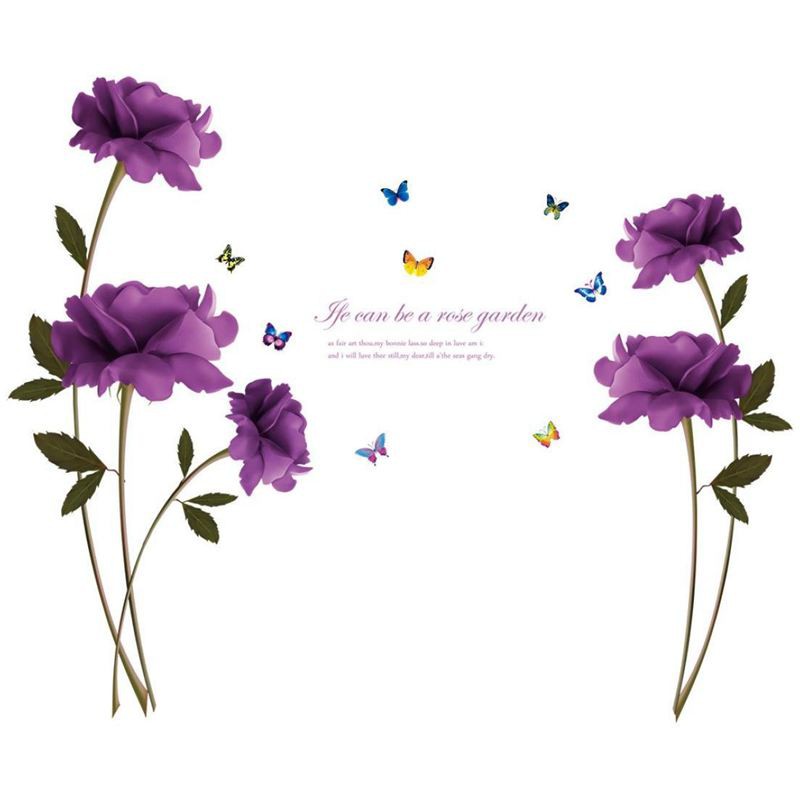 Diy Stiker Dinding Dengan Bahan Mudah Dilepas Gambar Bunga Mawar Warna Ungu Untuk Dekorasi Rumah