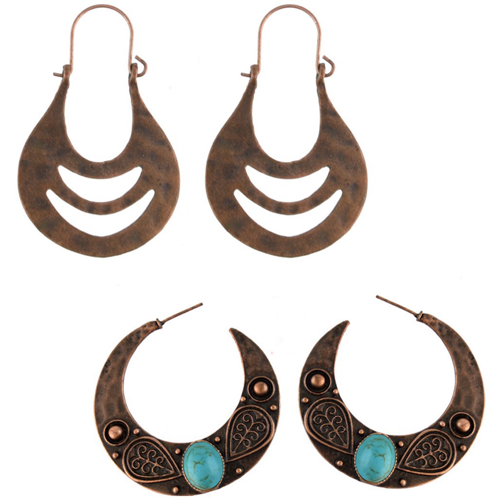 Anting Tusuk Gantung Desain Ukiran Bunga Bahan Tembaga Gaya Vintage Simple Untuk Wanita 4591