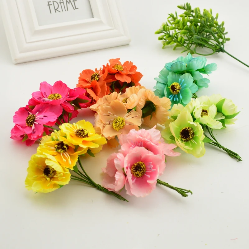 6 Pcs Lot 11 Warna Sutra Bunga Sakura Kecil Buatan Poppy Buket Pernikahan Dekorasi Mini Rose Bunga Untuk Diy Scrapbooking