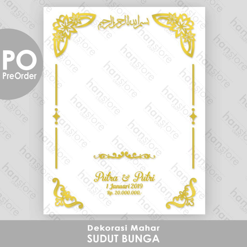 Po Dekorasi Mahar Akrilik Cermin Emas Sudut Bunga Untuk Mahar