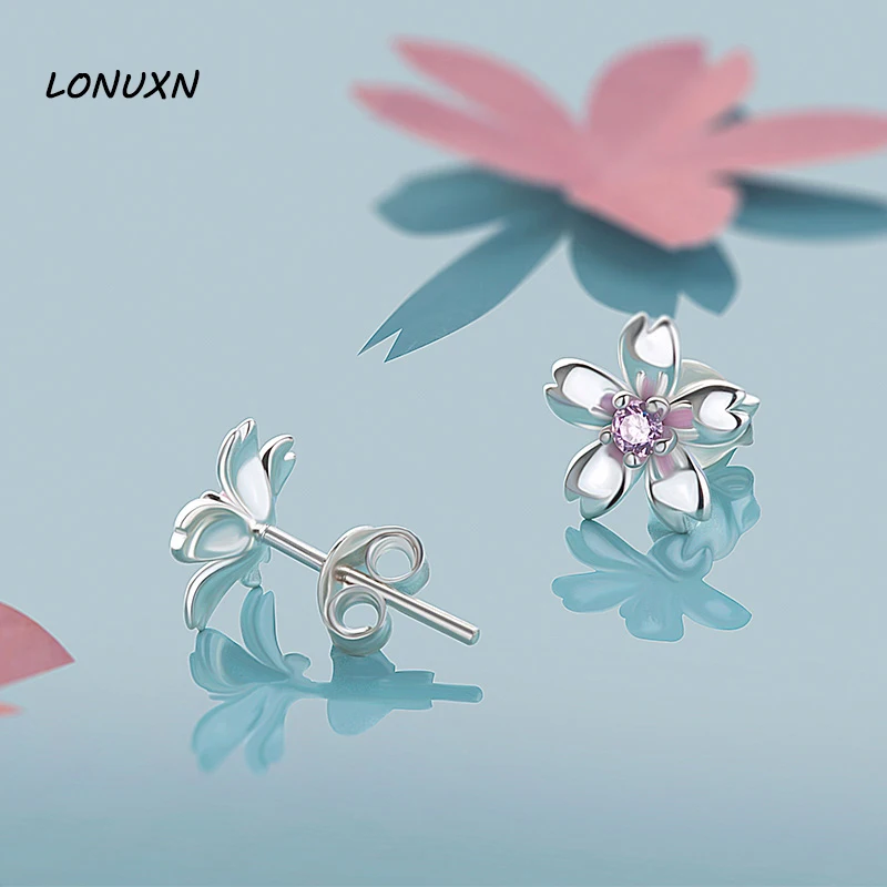 Us 46 07 8 Off Bunga Sakura Bentuk Ungu Kristal Wanita Perhiasan 1 Cm Lucu 100 925 Sterling Silver Anting Sederhana Perempuan Gadis Hadiah Dengan