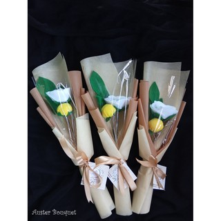 B25 Buket Bunga Flanel Mawar Melati Pompon Free Kartu Ucapan Murah