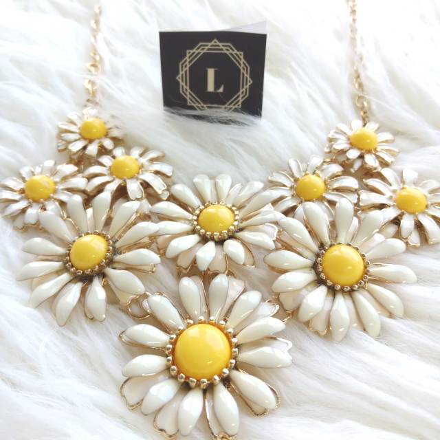 Kalung Wanita Model Bunga Matahari Warna Putih Aksesoris Mewah