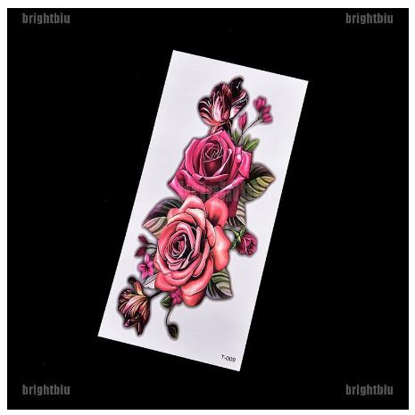 Tattoo Tato Temporer Sementara Wanita Tahan Air Gambar Bunga Mawar Rose Berwarna
