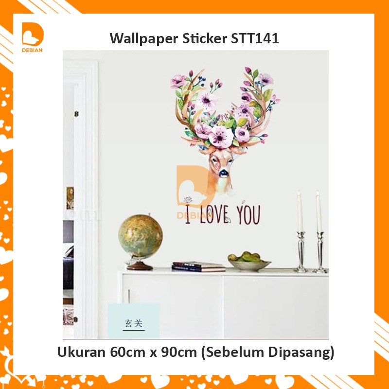 Wallpaper Dinding Wall Sticker Motif Rusa Dan Bunga Stt141