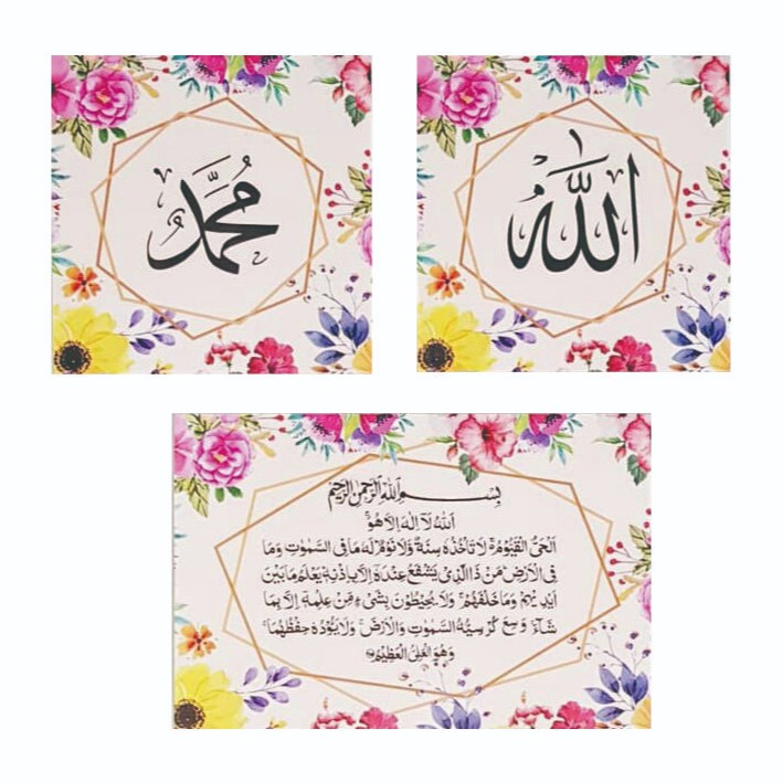 C2 1 Set Kaligrafi Allah Muhammad Ayat Kursi Motif Bunga Shabby Chic Hiasan Dinding Interior Ruang