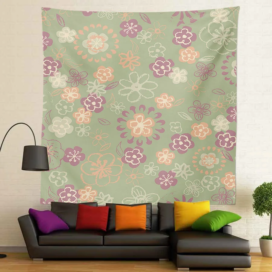 130x150 Gaya Retro Bunga Lukisan Sketsa Dicetak Tapesrty Hiasan Dinding Latar Belakang Dekorasi Tirai Meja Pakaian Drop Pengiriman