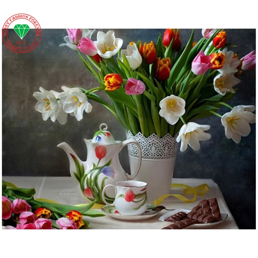Us 5 82 50 Off Diy 5d Berlian Lukisan Bunga Lily Dalam Vas Cross Stitch Putaran Batu Menjahit Diy Berlian Bordir Flore Home Dekorasi In Berlian