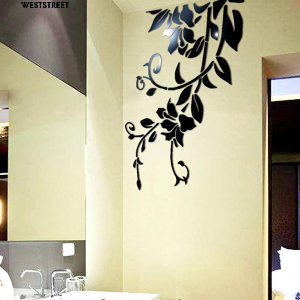 Stiker Dinding Decal Desain Bunga Efek Cermin 3d Bahan Akrilik