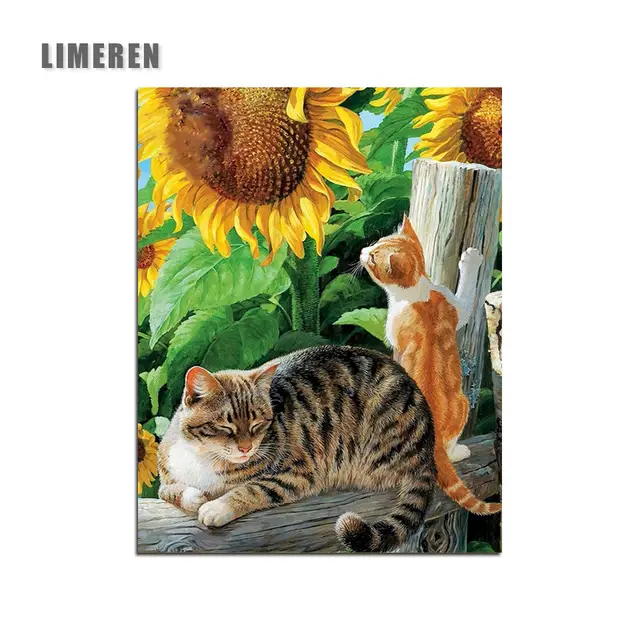 Bunga Matahari Lukisan Dengan Angka Menggambar Hewan Kucing Diy Digital Minyak Gambar Di Atas Kanvas Tangan Cat Dekorasi Rumah Untuk Anak Anak Yang