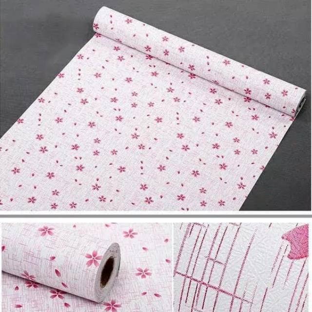 Wallpaper Stiker Dinding Motif Bunga Pink Latar Putih 45cm X 10m Sticker Dinding Motif Bunga Shaby