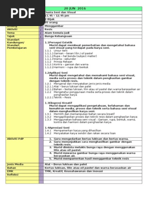 Rancangan Pengajaran Tahunan Pendidikan Seni Visual Tahun 6