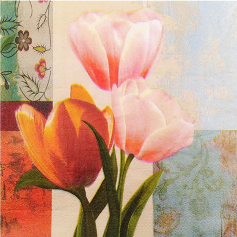 Us 3 0 Vintage Serbet Kertas Untuk Meja Jaringan Merah Muda Merah Bunga Tulip Decoupage Pernikahan Ulang Tahun Pesta Serviettes Banque Makan Malam