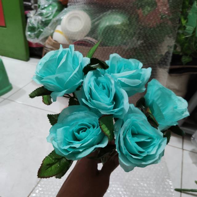 Bunga Mawar Mekar Artificial Import K6 Biru Aquaria Bunga Palsu Mawar Palsu Bunga Artificial