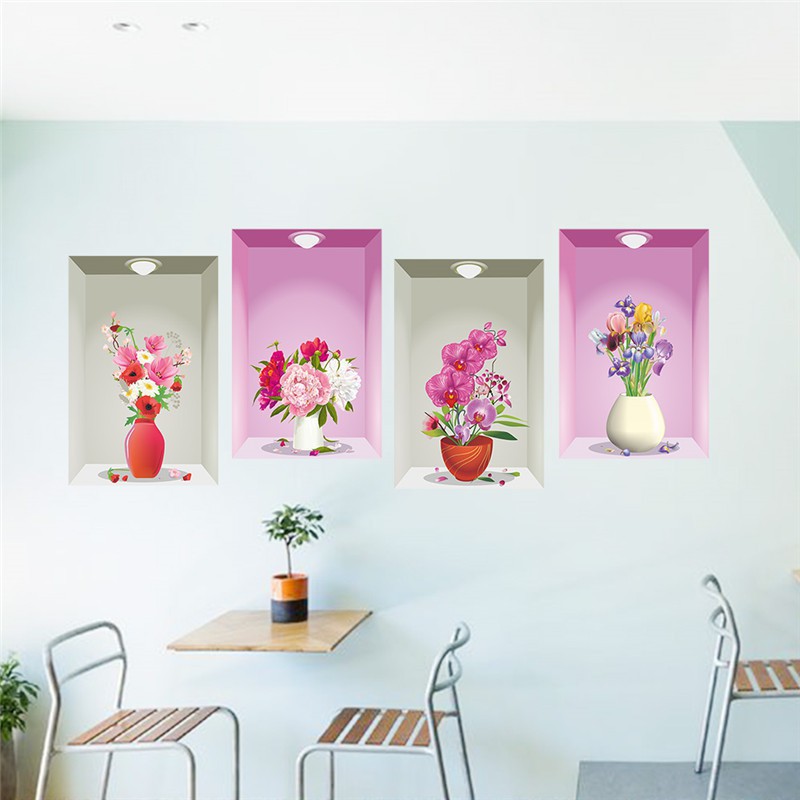 3d Simulation Flower Vase Wall Stickers Decor Pvc Removable Home Wallpaper Diy