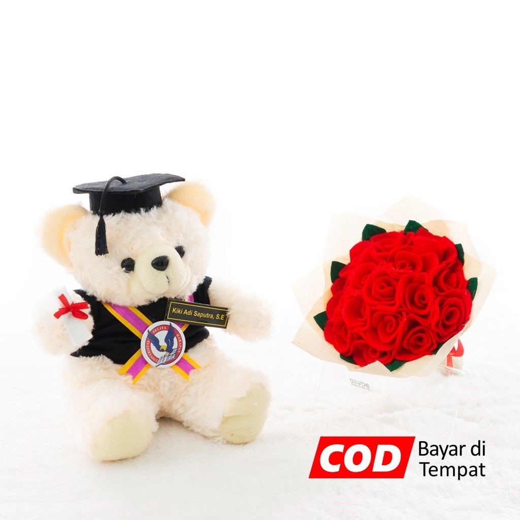 Ready Stok Paket Boneka Wisuda Teddy Dan Buket Bunga Mawar Jogja