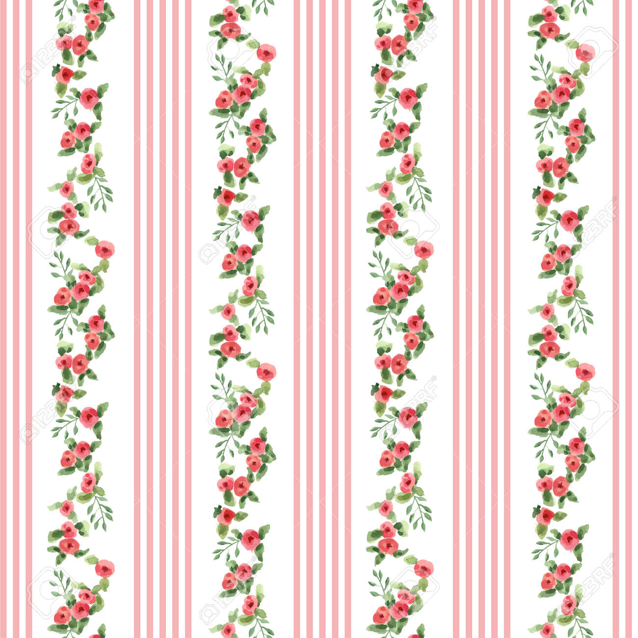English Floral Pattern With Stripes Vector Floral Vintage Wallpaper