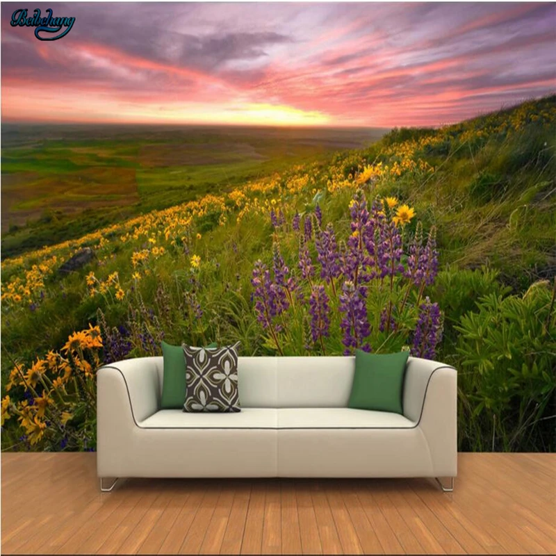 Us 8 4 44 Off Beibehang Besar Wallpaper Kustom 3d Hd Pemandangan Lereng Gunung Kecil Bunga Liar Lavender Dekorasi Dinding In Wallpaper From