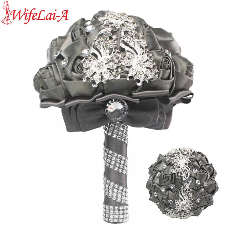 Perak Berlian Pengantin Pernikahan Bouquet Gelap Abu Abu