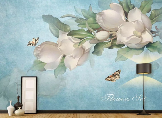 Floral Wallpaper Gardenia Flower Wall Mural White Nordic Floral Wall Paper Scandinavian Home Decor Cafe Design