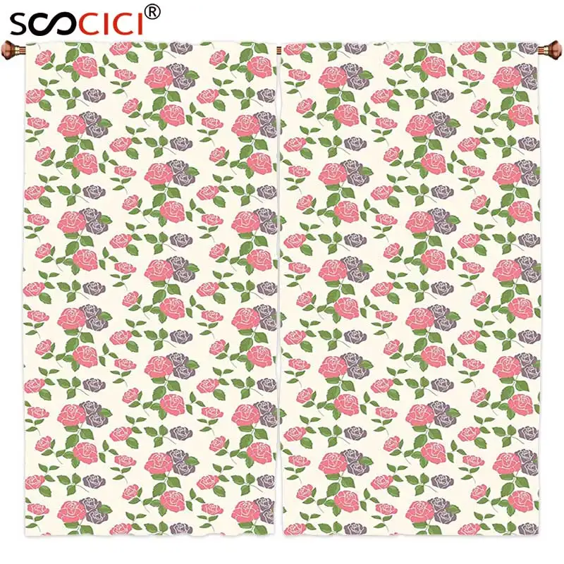 Us 39 68 49 Off Tirai Jendela Perawatan 2 Panel Taman Bunga Bunga Mawar Romantis Negara Desain Dengan Daun Art Light Pink Lilac In Tirai From Rumah