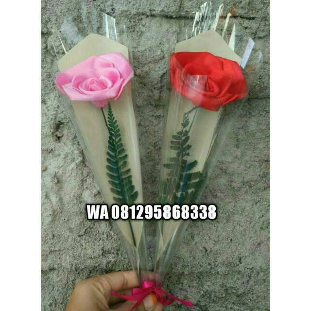 Harga Promo Bunga Setangkai Single Rose Satin Kado Valentine Anniversary Ulang Tahun Wisuda