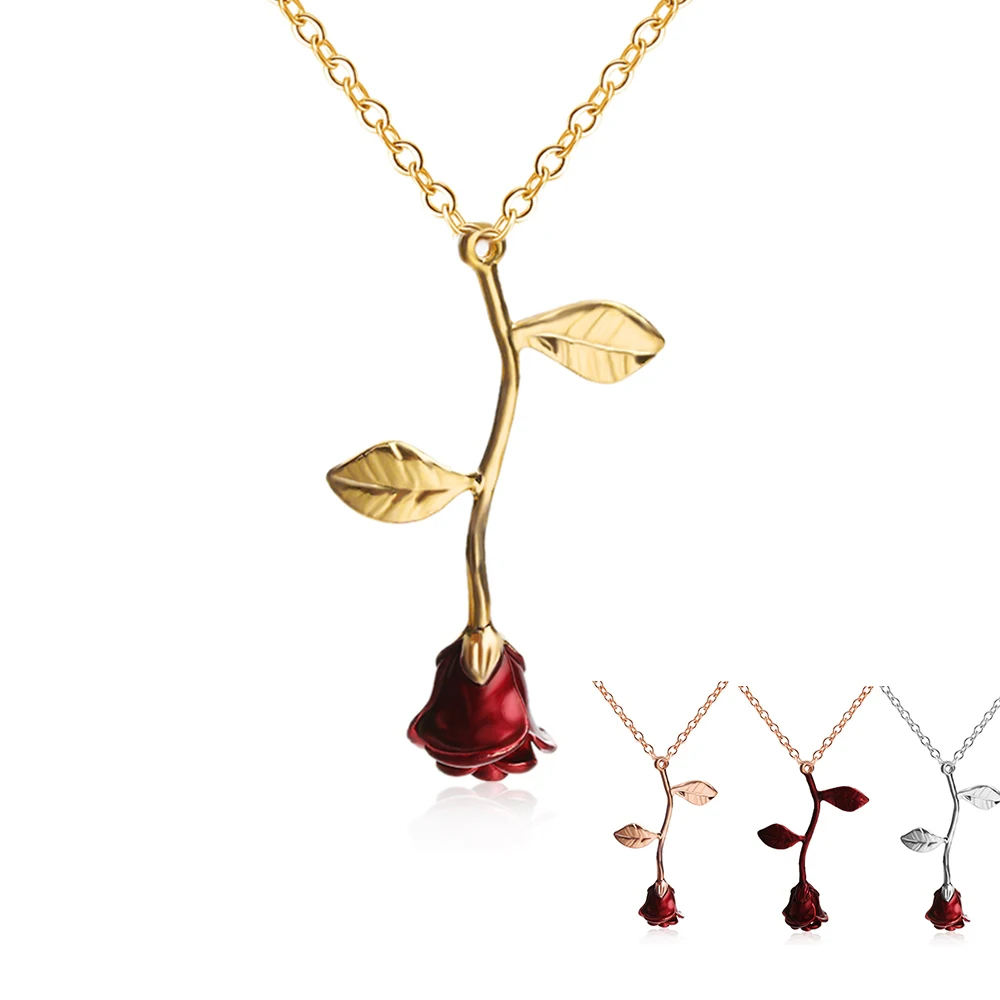 Us 0 59 28 Off Bunga Mawar Merah Kalung Wanita Kalung Warna Emas Mawar Bunga Liontin Kalung Boho Pesona Perhiasan Hadiah Yang Bagus In Liontin