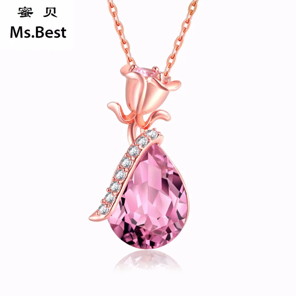 Us 8 9 Merah Muda Kristal Pernyataan Bunga Mawar Naik Warna Emas Liontin Kalung Untuk Wanita 18 Inch Panjang Dengan 5 Cm Ekstensi Adjustable