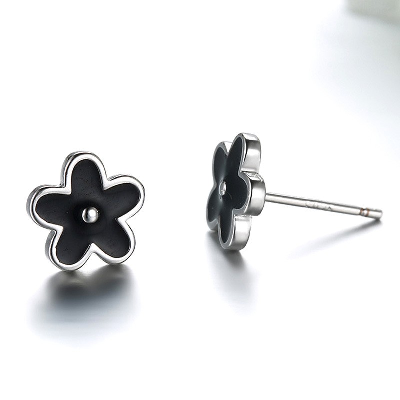 Anting Tusuk Model Bunga Warna Hitam Untuk Wanita