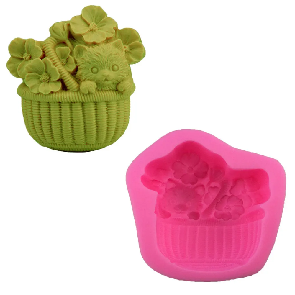 Us 7 37 10 Off Puppy Keranjang Bunga Silicone Cetakan Handmade Sabun Cetakan Kue Kue Alat Diy Fondant Kue Jelly Ice Chocolate Fimo Tanah Liat In