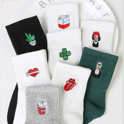 1 Pair Jepang Harajuku Menyenangkan Kartun Bordir Bunga Susu