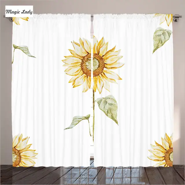Tirai Modern Desain Ruang Tidur Bunga Matahari Dekorasi Koleksi Lukisan Cat Air Kuning Hijau 2 Panel Set 145 265 Sm
