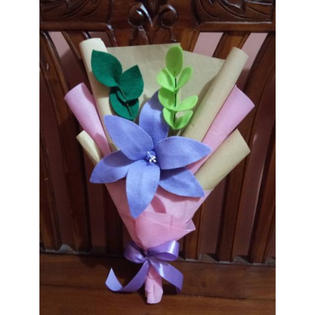 Buket Bunga Flanel 1 Tangkai Bunga 2 Tangkai Daun
