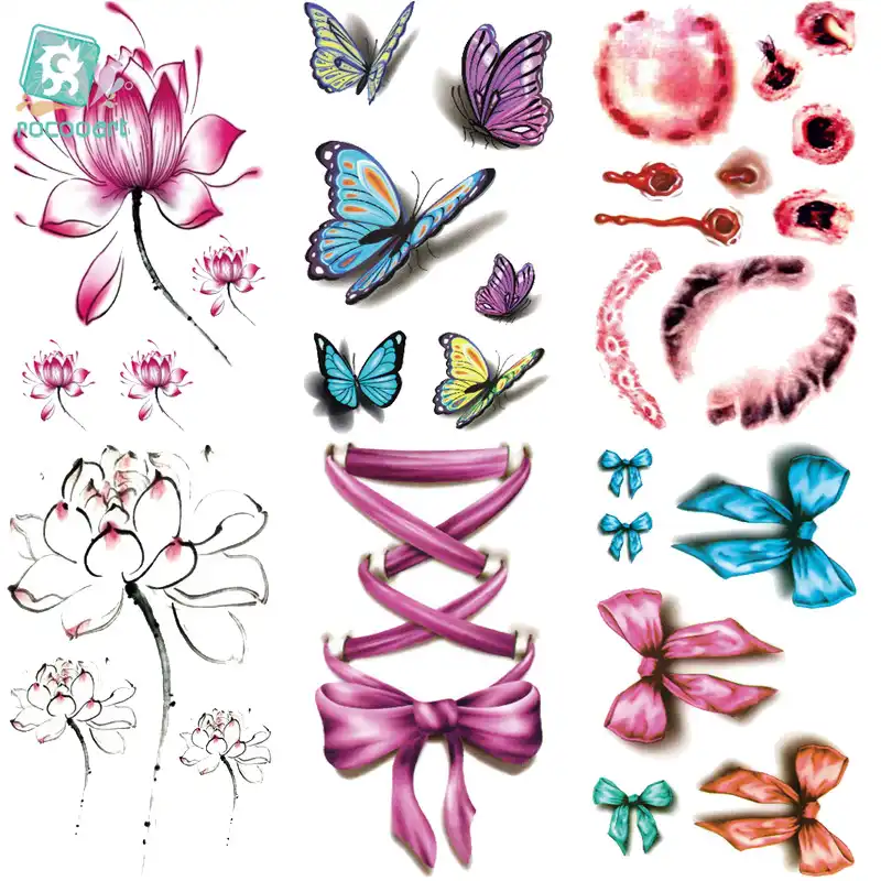 Rocooart Rc202 230 2018 Sekali Pakai Tato Stiker Air Tawar Bunga Bunga Lili Bunga Kupu Kupu Stiker Tato Sementara Bekas Luka