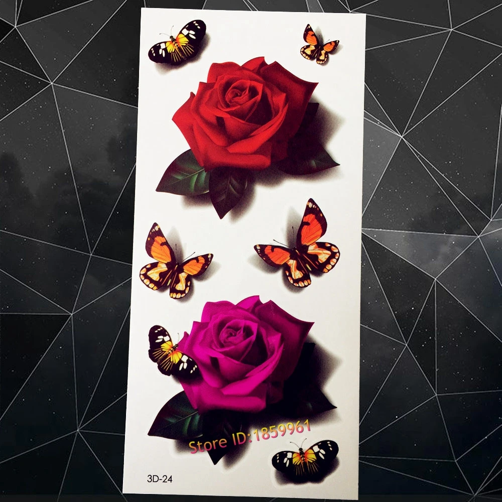 Sayang Tubuh Art Cat 3d Bunga Mawar Stiker Tato Transfer Air