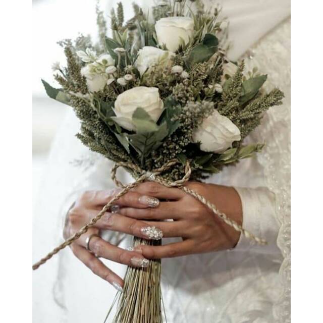 Hand Bouquet Wedding Rustic Flower Buket Bunga Kering Bunga Mawar Putih Buket Bunga Pengantin